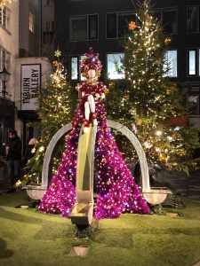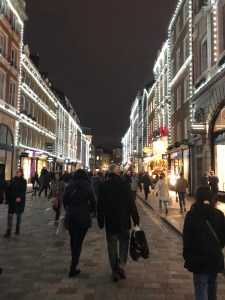 One of the first things we did was to go to the Chiltern Street night Christmas shopping event. I love that street with its iconic architecture of red and white buildings. It is famous for one of London’s best restaurants, Chiltern Firehouse. This night of Christmas shopping took us back in past. I could imagine the village main streets in England during the Christmas season. Festive, cheerful, and friendly, the street had the vibe of a village Christmas of a bygone era.