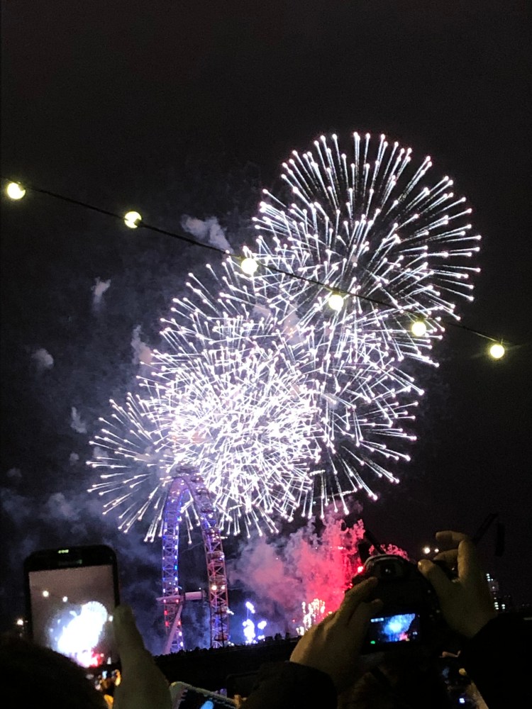 And the final cherry on our Christmas celebrations in London was watching the New Year’s Eve fireworks on the Thames with I don’t know how many thousands of people. We made ourselves comfortable on the sidewalk across from the London Eye on the river bank several hours before the show was about to begin. Luckily it wasn’t a particularly cold night. Sitting on the sidewalk we passed time watching people waiting for midnight. I didn’t care how long we waited on that cold slab of concrete. We were together. With the bongs of Big Ben and fireworks over London Eye, we welcomed 2019.