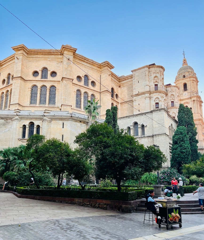 Our lodging was in the center of the old town, a five-minute walk from the Catedral De Malaga. We left our car at an underground car park near the coast given that the old city of Malaga is like any other centuries old city with very narrow streets. There was no way to take our car into the old city. The parking in this part of Spain is usually underground and very tightly packed, so we had to be very careful navigating our car into a parking spot. We parked and made our way to the city center pulling our suitcases and juggling our handbags on a cobblestone street. A difficult task for sure! We repeated that in every city that we visited in the next few days.