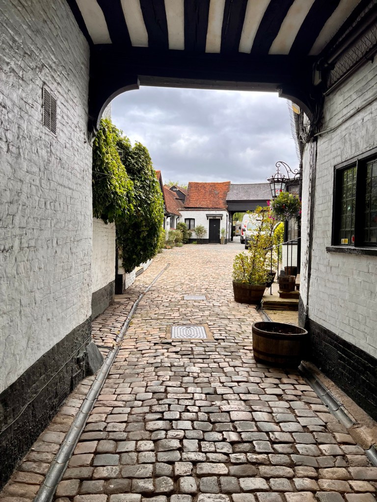 Our plan was to walk down the main street to admire the historic buildings and soak in the charms of this centuries old village. The village gets flooded with Londoners on the weekends during the summer months, but this was a weekday and quiet. Amersham was historically a stop for coaches on their way to London. We immediately noticed the signs of taverns and tall gates that would lead into the courtyards within. These gates were made tall for the coaches to pass through. I love historical novels so I can imagine Elizabeth Bennet walking into one of these taverns at a coach stop. One of the taverns was made famous by the movie Four Weddings and a Funeral.